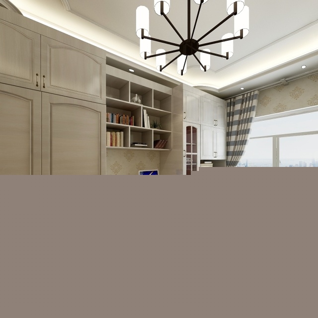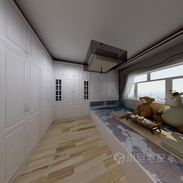 榻榻米加衣柜和書桌書架,合理利用空間,顏色是淺色木紋系列,溫馨不失莊重,有文化氣息。