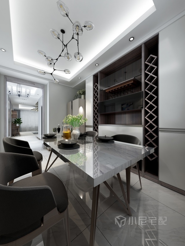 時尚簡潔,空間以實(shí)用為主,美觀為輔,開闊明朗,體現(xiàn)高品質(zhì)的家居環(huán)境即可。 案例說明:簡約不等于簡單,它是設(shè)計師深思熟慮后經(jīng)過創(chuàng)新得出的設(shè)計和思路的延展,不是簡單的“堆砌”和平淡的“擺放”,在本案設(shè)計中設(shè)計師把原有的廚房和客廳相融合使客廳整體空間變得更大使用起來更舒適。在家具配置上,白亮光系列家具,獨(dú)特的光澤使家具倍感時尚,具有舒適與美觀并存的享受。在配飾上,延續(xù)了黑白灰的主色調(diào),以簡潔的造型、完美的細(xì)節(jié),營造出時尚前衛(wèi)的感覺。