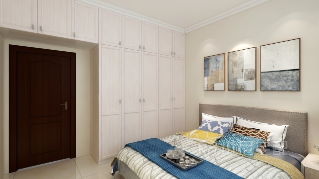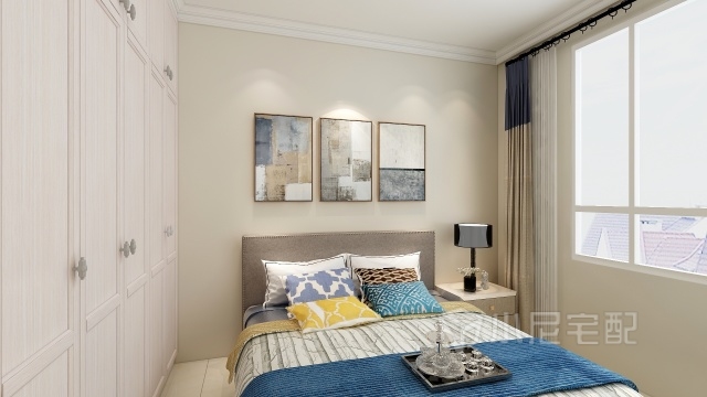 臥室以簡約為主,米黃色墻面溫馨