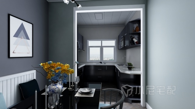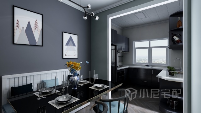 本案的餐廳設(shè)計(jì)亮點(diǎn)便是噴花茶鏡,以及吊頂。與客廳的設(shè)計(jì)合二為一,相互呼應(yīng)。還運(yùn)用兩幅現(xiàn)代掛畫,更符合現(xiàn)代人的審美品位。餐廳中設(shè)置了吧臺,可以點(diǎn)綴餐廳的空間,同時也提高了主人的品味。