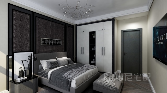 頂面采用規(guī)則的石膏板吊燈和筒燈,床頭背景都運(yùn)用了壁紙等材料。從而營造一個現(xiàn)代化的簡單,舒適主臥空間??团P的設(shè)計(jì),主要以乳膠漆,壁紙,石膏線條為只要裝飾材料。