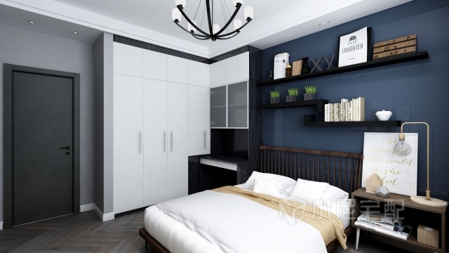 簡單實(shí)用的衣柜配上字臺和書架,叫整個空間功能性增強(qiáng),在加上墻面的顏色奪人眼球