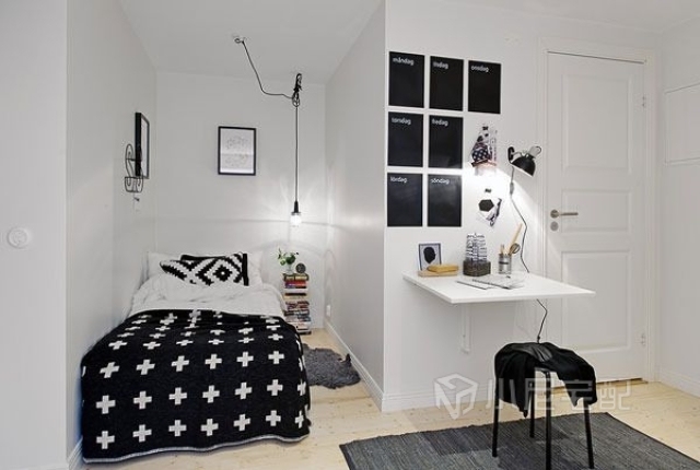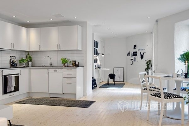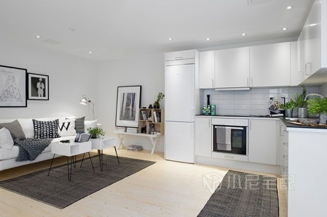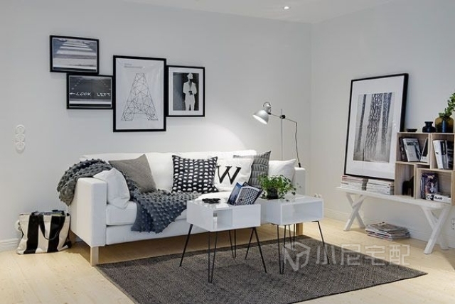 這套案例很有北歐瑞典風(fēng)情,全屋選用白色為主色調(diào),讓空間增加寬敞感。家具幾乎全部為黑白(灰)搭配,對比效果明顯。家具造型簡單,突出硬朗的線條,給人干凈利落的感覺,突出主人時尚的生活品味。白色給人潔凈明朗的感覺,同時還能增強空間感??蛷d配備了充足的燈飾,采光條件極好。簡單的沙發(fā),特色小茶幾,組合黑白相框,讓客廳充滿時尚個性。