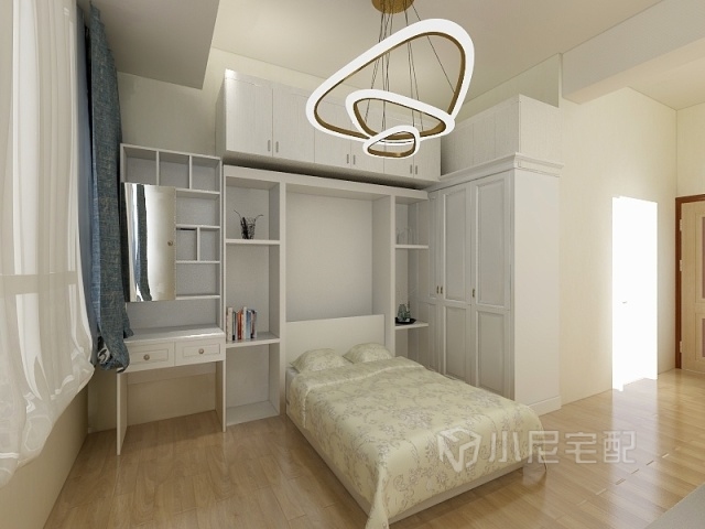 推拉門衣柜設(shè)計(jì),整潔又舒適,進(jìn)門處白色趟門式衣柜,為小巧的臥室大大節(jié)約了活動(dòng)空間