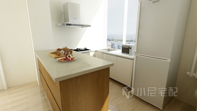 開放式的廚房設(shè)計(jì)、三角區(qū)域的空間劃分,操作更加開闊的同時(shí)也顯得格外時(shí)尚