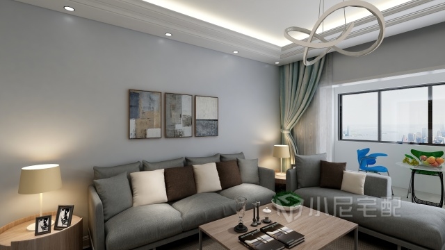 簡(jiǎn)約的布藝沙發(fā),以灰色調(diào)為主,盡顯沉著穩(wěn)重。