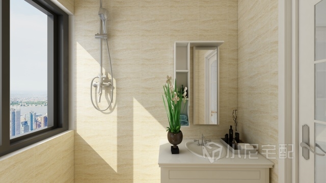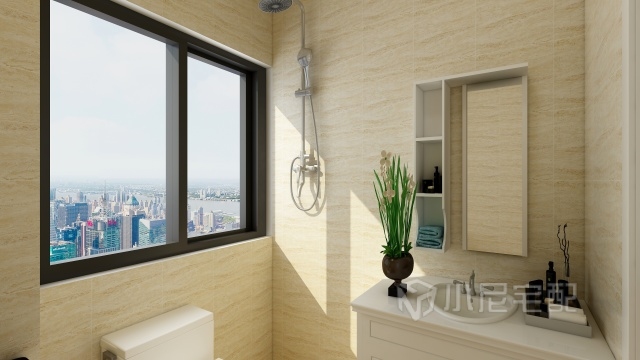 主衛(wèi)生間暖色墻磚鋪設(shè),暖意融融