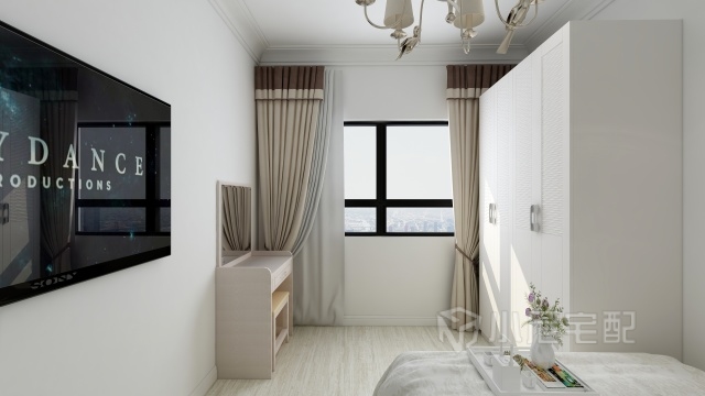 主臥白色四門柜配合翻轉(zhuǎn)妝臺(tái),一切都以簡(jiǎn)潔為主