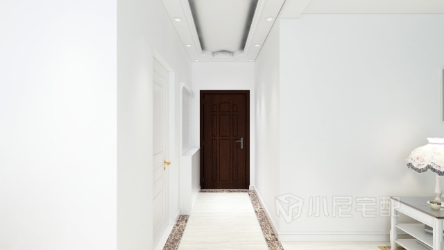 門廳定制鞋柜,有效遮擋分水器白色干凈利落與旁邊防盜門的深紅色相呼應(yīng)