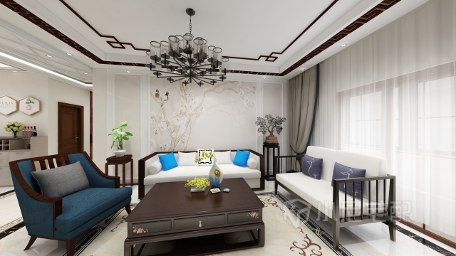 客廳采用的是新中式 沙發(fā)采用的是實(shí)木休閑沙發(fā) 松軟舒適 并沒(méi)有選用純實(shí)木的紅木沙發(fā) 紅木沙發(fā)分量重不易打掃 而且很容易磕碰到身體