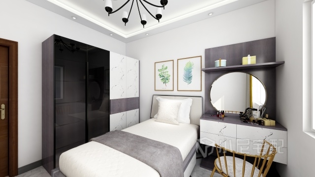 次臥 青年房衣柜功能區(qū)特別分明 也同樣配備了玻璃門(mén)扇 簡(jiǎn)潔時(shí)尚 配備的梳妝臺(tái)就很容易看出是一個(gè)美少女的房間啦呵呵