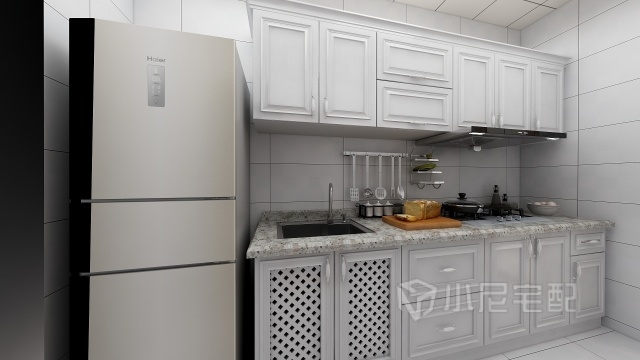 廚房一字型櫥柜 面積雖小但是合理利用空間 儲(chǔ)物 做飯 各不耽誤同時(shí)也擺脫了冰箱沒地方放的難題