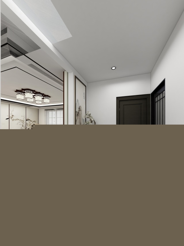 二樓樓梯口處是主人書房位置,為增加設(shè)計(jì)感,將過道門洞加寬,造型改為八角窗,顏色采用黑白搭配,有徽派建筑的影子