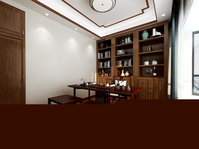 書房兼茶室 知己三兩座,茶香飄四溢。對話閑情事,偷得靜半日。