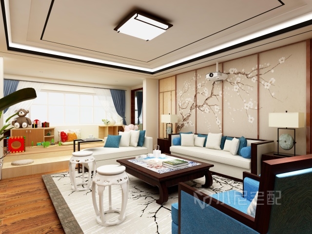 女主人全權(quán)操辦,中式風格,喜歡藍色