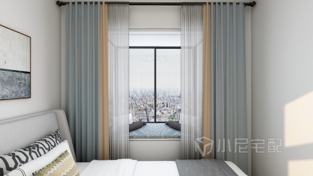 次臥室用整體推拉門做隔斷,增加客廳采光通風(fēng)