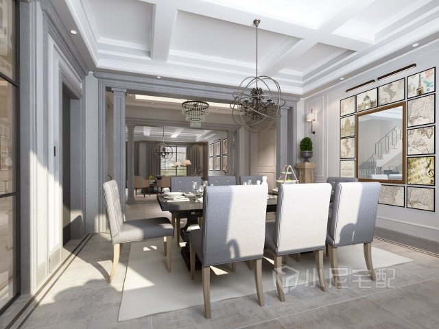 宴會廳把零碎的空間整合,沒有多余的顏色堆砌和擺設(shè),使用統(tǒng)一的暖灰色調(diào),去掉繁復(fù)設(shè)計的家具,但整個空間看起來,卻又簡而不凡