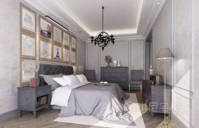 主臥,布置較為溫馨,作為主人的私密空間,主要以功能性和實用舒適為考慮的重點,臥室沒有設(shè)頂燈,使用暖色調(diào)的木地板來裝點,同時軟裝在用色上非常統(tǒng)一