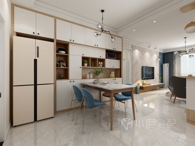 餐桌以及酒柜和地板四者完美的融為了一體,簡潔、干凈、利落的體現(xiàn)了整個設(shè)計和裝修。