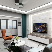 濃郁的高雅感營造出精致的空間,明暗色調(diào)和諧共處,其中點綴的少許亮色是點睛之筆。環(huán)顧四周之時,軟裝的搭配相得益彰,電視背景墻大理石的輝煌感更使整個空間大放異彩,是吸睛之處。
