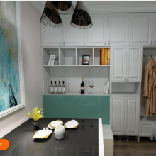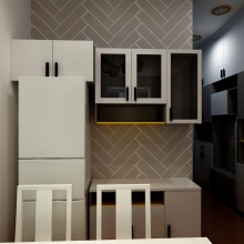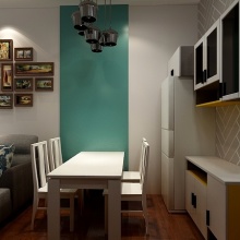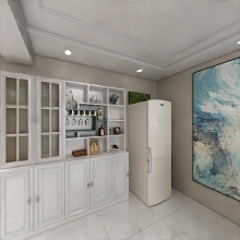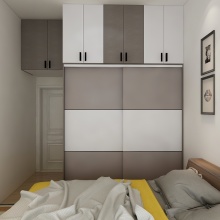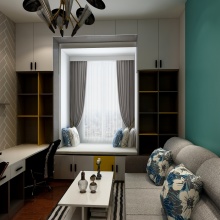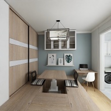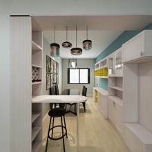 整體風格以時尚簡約為主,由于此戶型面積不大,所以層高3300的房子柜子直接做到頂,客廳既具備了客餐廳的功能也具備了辦公的功能,更具備了休息的功能,所謂把空間用到了極致
