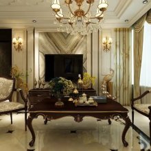 雖然房子空間不是很大但是女主人很喜歡奢華的感覺,客餐廳的設計滿足了女主人的愿望,
