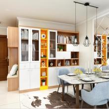 整個(gè)空間灰白色調(diào),為房間增添溫暖和生命力?;疑缫颜痉€(wěn)家居時(shí)尚界的頂端,與白色搭配時(shí)卻能成為主角,共同營造時(shí)髦感和高級感。從客廳到餐廳,運(yùn)用檸檬黃作為點(diǎn)綴色,給空間賦予了溫度和熱情。簡潔的線條和明亮的抽象藝術(shù)作品,搭配風(fēng)格使得這間房間既時(shí)尚又大方。