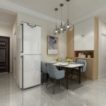 業(yè)主喜歡北歐風(fēng)格,喜歡生活空間帶點(diǎn)色彩,設(shè)計(jì)師為其定下整體以暖白色主基調(diào)的北歐小清新,配以木飾面家具,軟裝增加粉色調(diào)色,增加空間的活潑氣氛,充分體現(xiàn)女主人對(duì)新家愛(ài)的點(diǎn)點(diǎn)滴滴。當(dāng)每次推開(kāi)入戶門,看到映入眼前的自然溫馨,就會(huì)感受到抹去了疲憊的放松。對(duì),家就要這樣的自然表現(xiàn),不需要刻意的復(fù)雜堆砌,希望永遠(yuǎn)留出最初的夢(mèng)想,家。