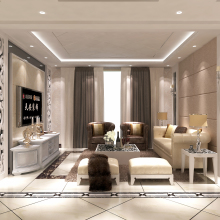 以舒適的米黃色搭配純白色營造出一種舒適明亮的居住感,簡約的造型搭配讓空間更顯開闊,現(xiàn)代與歐式混搭的整體風(fēng)格表現(xiàn)一個(gè)低調(diào)的品質(zhì)生活空間。