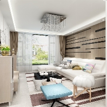整體色調以黑白灰為主,偏后現(xiàn)代風格,家具多為白色,時尚簡潔。