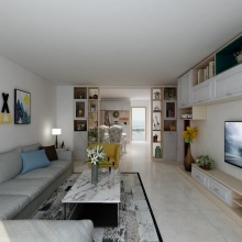 簡潔又清新的家居氛圍是人們一直以來所崇尚的,簡潔的線條與輕淺色調(diào)的拿捏,讓客廳、餐廚區(qū)域從視覺上呈現(xiàn)完全開放的開闊感。