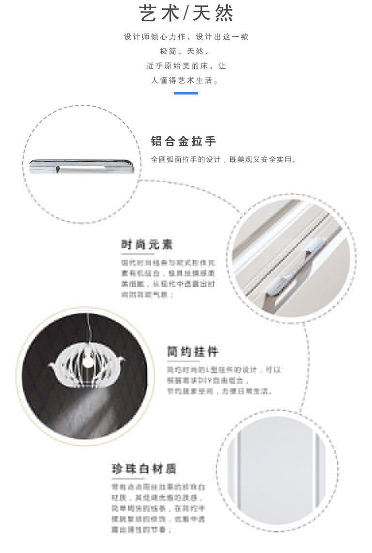 | 細節(jié)描述 | 家具在簡約中擺脫了繁瑣的修飾,從此,時尚的大潮中多了一朵潔白如玉的浪花;生活在簡約中除卻了人世的紛擾,從此,指縫間流過的時間都閃放著珍珠般細致的光芒。 |