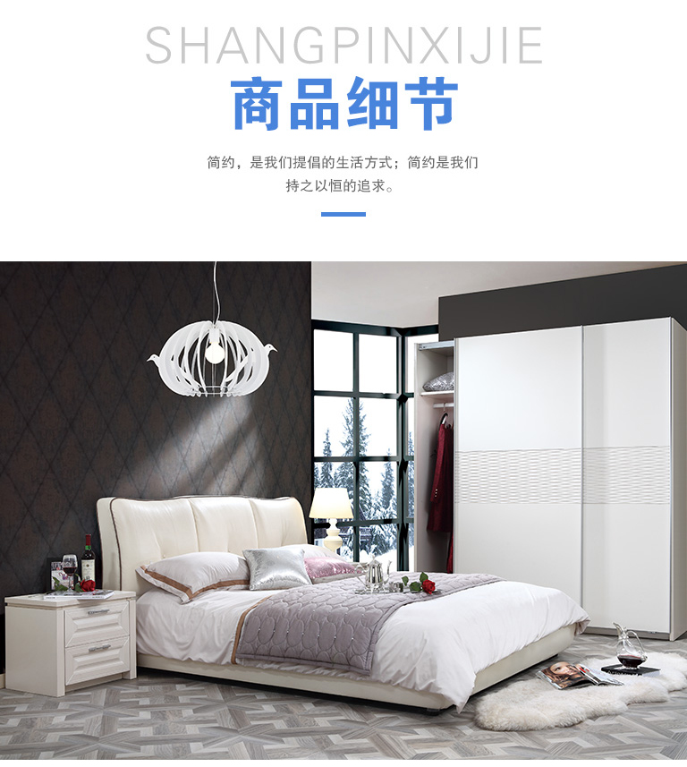 | 規(guī)格 | 外掛門衣柜:1800*605*2250mm、床頭柜:552*400*477mm、軟床:1960*2200*350mm、床墊:1800*2000*200mm |