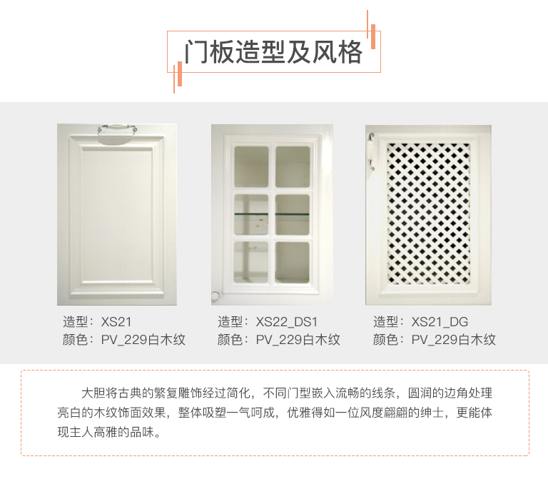 | 產(chǎn)品特點 | 強調(diào)一種優(yōu)雅、含蓄、內(nèi)斂的生活態(tài)度。在保留簡約歐式氣息的前提下將原來傳統(tǒng)的復(fù)雜雕花與現(xiàn)代元素相結(jié)合,締造出一種全新“簡約歐式風(fēng)格”。 |