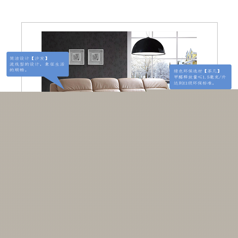 | 商品清單 | 組合沙發(fā)1件、定制電視柜1件、茶幾1件 |