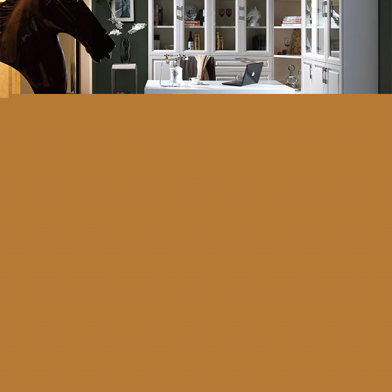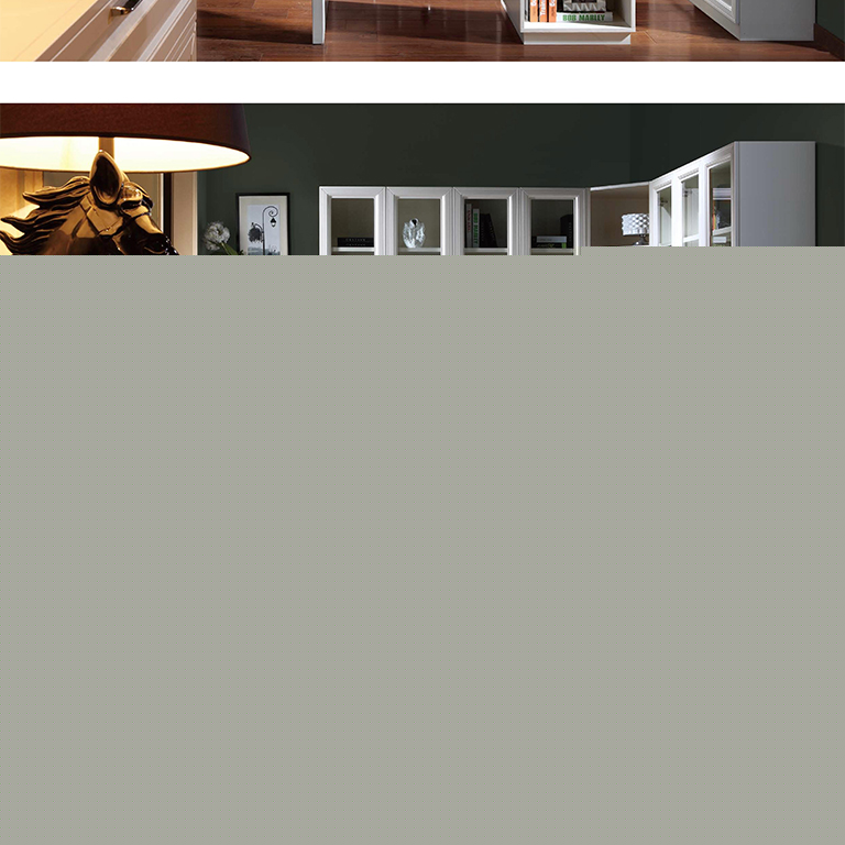 | 細節(jié)描述 | 展示主人的收藏藝術(shù)。通過局部鏤空封閉,在視覺上更具有變化性,營造出精致高雅的書房氛圍。 |