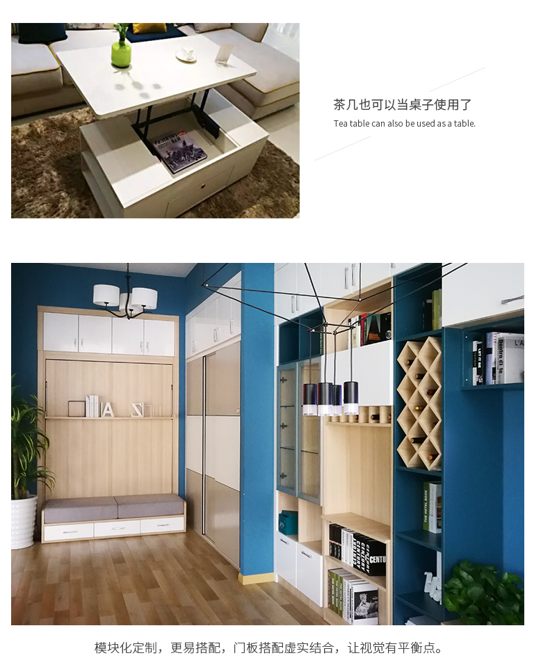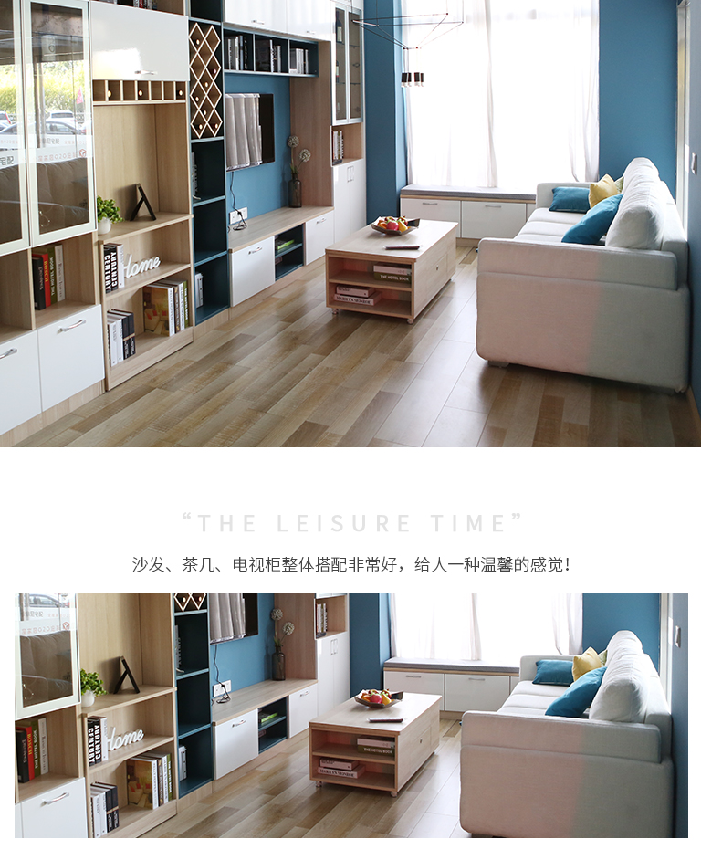 | 細(xì)節(jié)描述 | 設(shè)計師將電視柜、書柜、展示柜、儲物柜等合為一體,再配上模塊化設(shè)計手法,大模塊中包含著小模塊,可以不受空間限制,自由組合,隨意中遵循著規(guī)律。 |