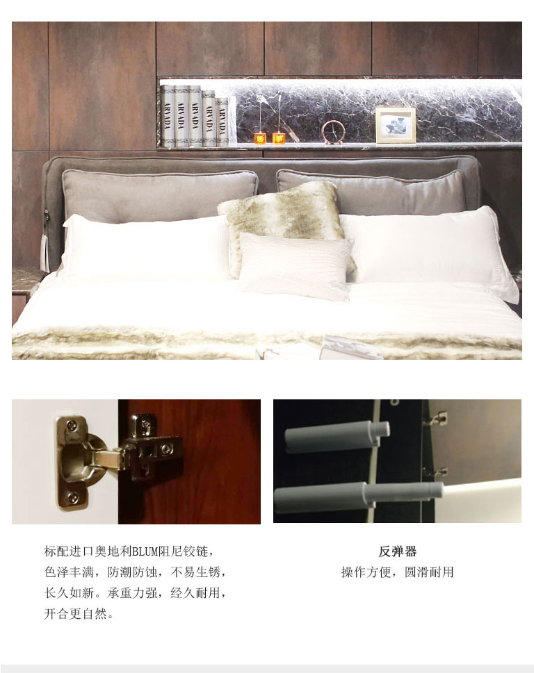 | 細(xì)節(jié)描述 | 背景墻設(shè)有開放式的空間用來(lái)存放睡前讀物,深色火山巖帶來(lái)的厚重質(zhì)感完全可以讓你安心閑讀、悠然入眠。 |