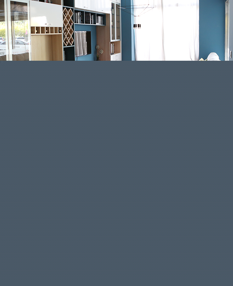 設計師將電視柜、書柜、展示柜、儲物柜等合為一體,再配上模塊化設計手法,大模塊中包含著小模塊,可以不受空間限制,自由組合,隨意中遵循著規(guī)律。